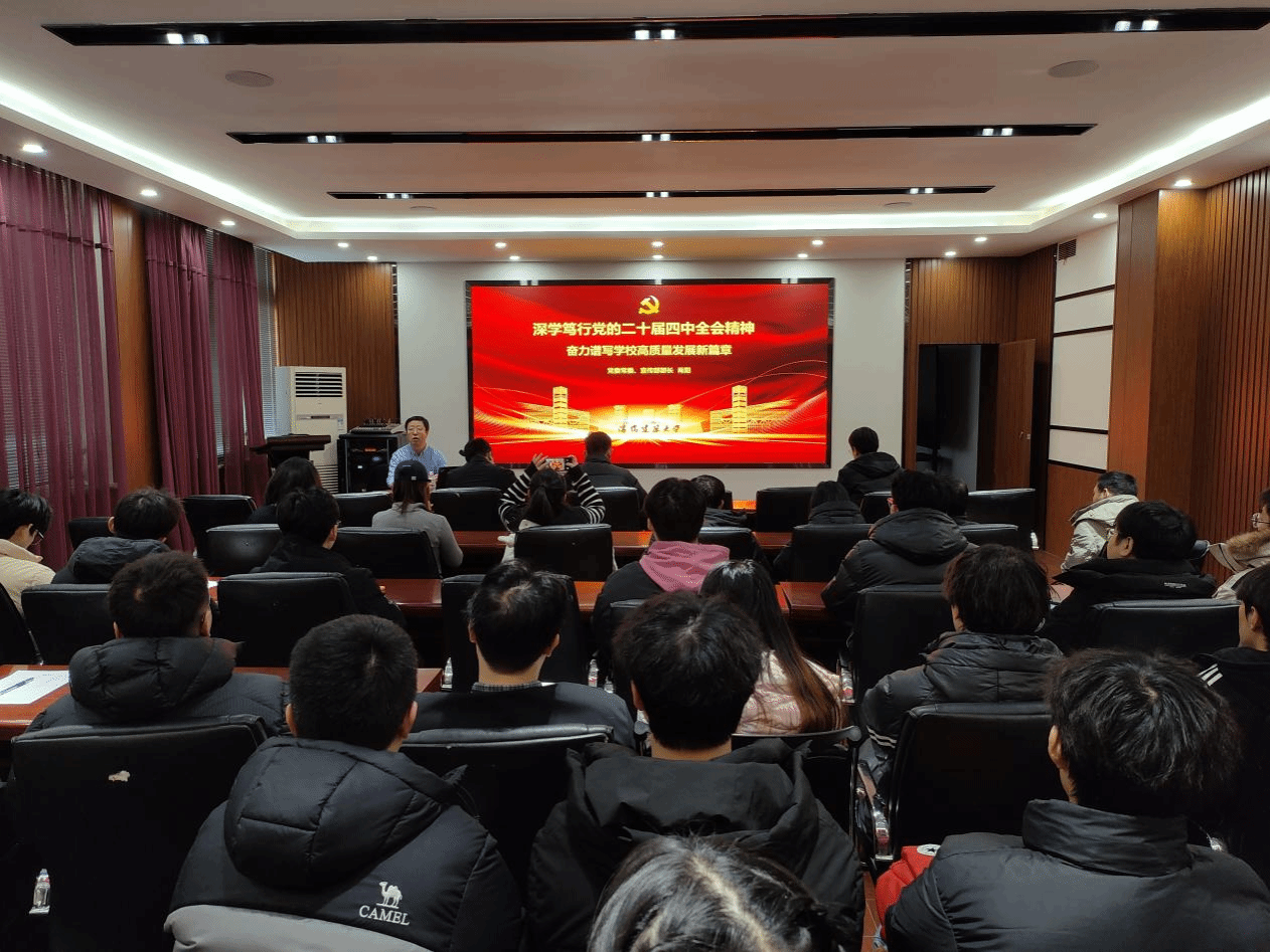 为深入学习贯彻党的二十届四中全会精神,切实把全院师生党员的思想和行动统一到党中央决策部署上来,12月25日,市政与环境工程学院党委特邀学校党委常委、宣传部部长肖阳开展专题理论宣讲。宣讲会由学院党委书记寇福生主持,全院60余名师生党员代表参与其中。