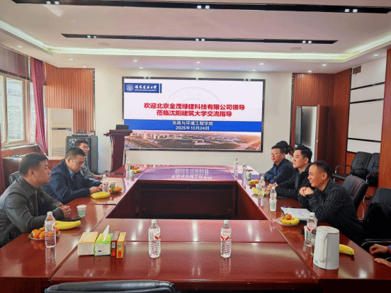 为进一步深化绿色科技领域校企合作,10月24日,北京金茂绿建科技公司副总经理魏三强带队赴沈阳建筑大学市政与环境工程学院开展校企合作专题交流活动。 市政与环境工程学院党委书记寇福生,辽河研究院院长马兴冠教授以及尚少文、郭海峰等教师团队参加交流活动。双方围绕技术联合攻关、成果转化落地、人才协同培养三大核心议题充分研讨,最终达成广泛共识,为校企深化合作筑牢基础。