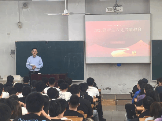 为深入贯彻习近平新时代中国特色社会主义思想,引导新生扣好“人生第一粒扣子”、树立正确政治方向、厚植爱党爱国情怀,9月24日下午,市政与环境工程学院组织开展了2025级新生入党启蒙教育活动。学院党委书记寇福生担任主讲人,学院新生辅导员及全体2025级新生共同参会,在思想交流中开启新生的“红色启蒙第一课”。